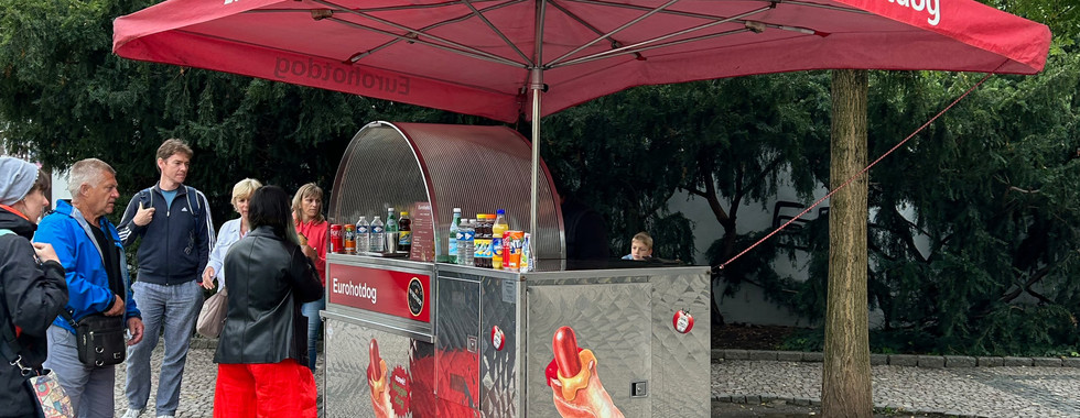 Check out the hot dog stand in the photo section. They sausage vendors hollow out the middle of a roll (there's a machine for that) and then stick a big sausage in the middle. It's wildly popular, and makes for neat eating. Sausage all day, every day. It's what's happening in this part of the world! And the supermarket Billa? They are all over Europe as well. Such a popular name! Just missing one "i".